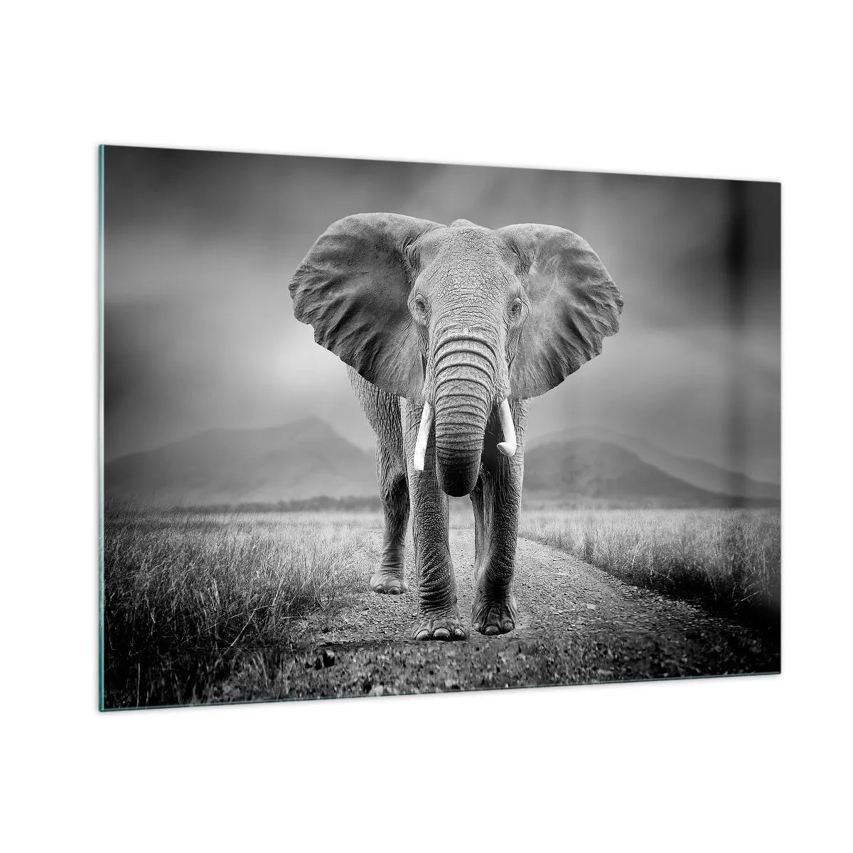 Impression sur verre - Image sur verre - Éléphant dans la savane en noir et blanc - 100x70cm - Les hôtes vous saluent - Décoration murale moderne pour le salon et la chambre ARTTOR