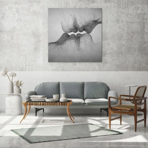 Impression sur verre - Image sur verre - Un baiser abstrait présenté sous une forme éthérée - 80x120cm - La bise du vent - Décoration murale moderne pour le salon et la chambre ARTTOR