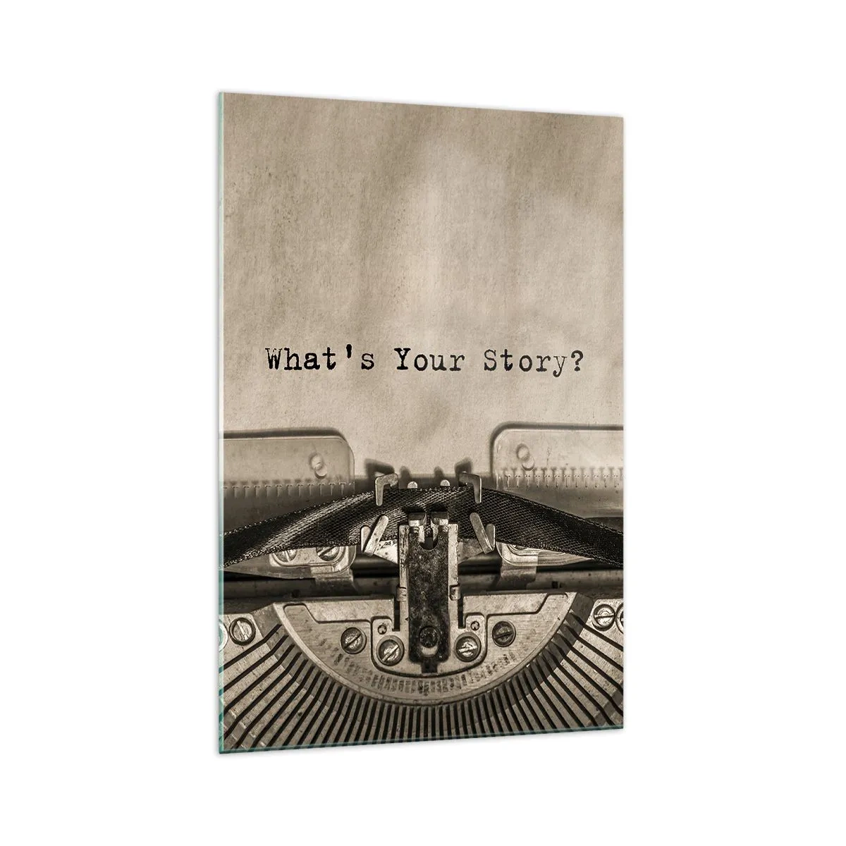 Impression sur verre - Image sur verre - Une machine à écrire avec les mots « Quelle est votre histoire ? » - 70x100cm - Réponds-moi - Décoration murale moderne pour le salon et la chambre ARTTOR