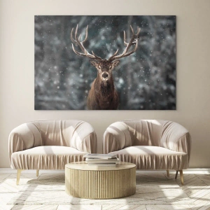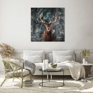 Impression sur verre - Image sur verre - Cerf dans une forêt d'hiver avec de la neige qui tombe - 70x100cm - Roi de la forêt couronné - Décoration murale moderne pour le salon et la chambre ARTTOR