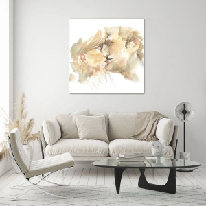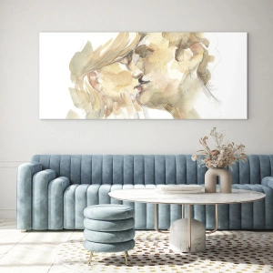 Impression sur verre - Image sur verre - Portrait romantique à l'aquarelle d'un couple s'embrassant - 160x50cm - A moitié trouvé ? - Décoration murale moderne pour le salon et la chambre ARTTOR