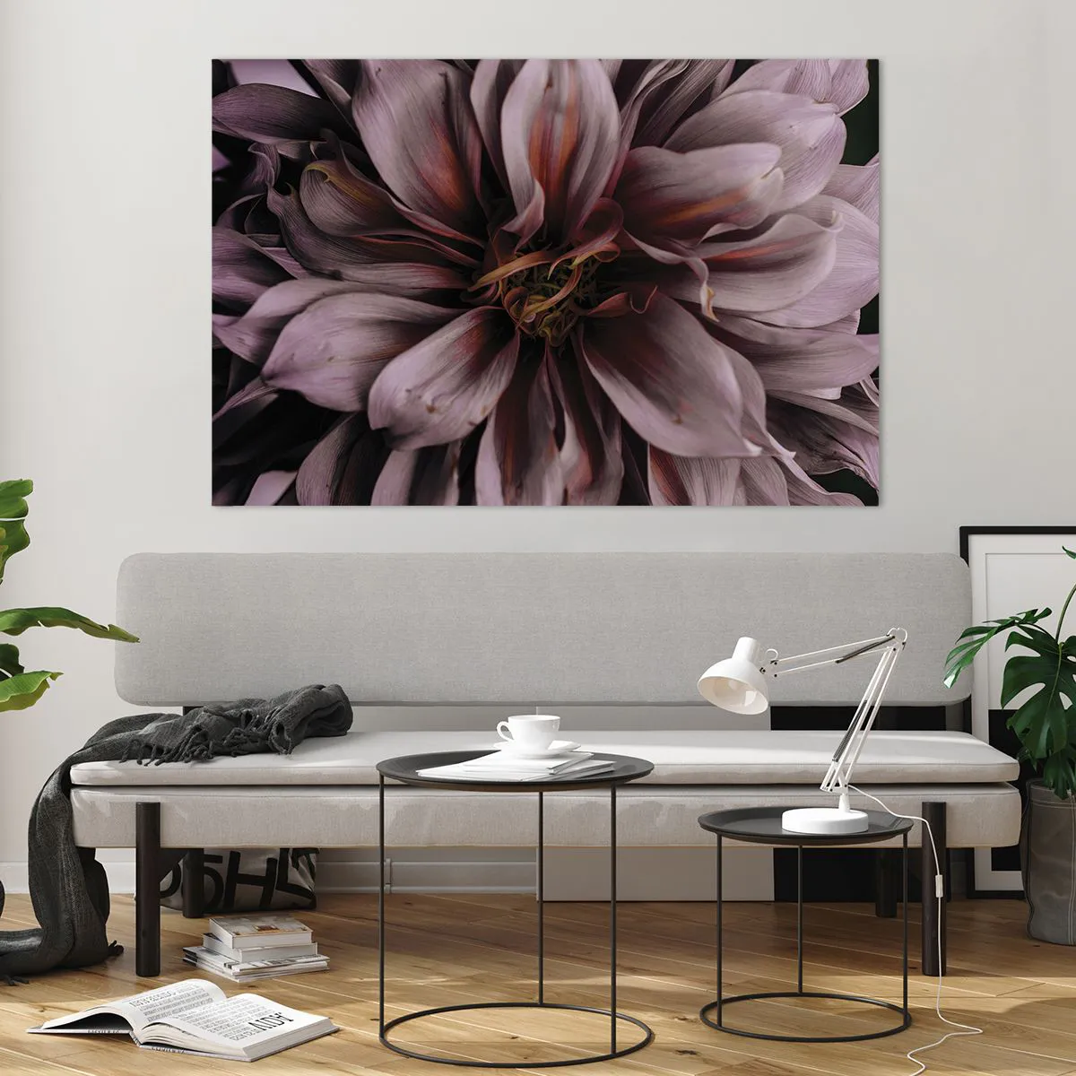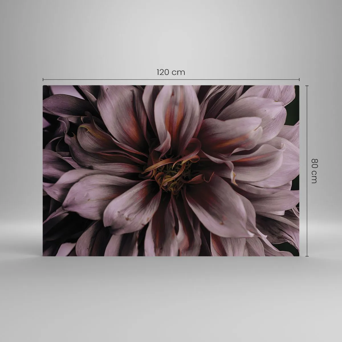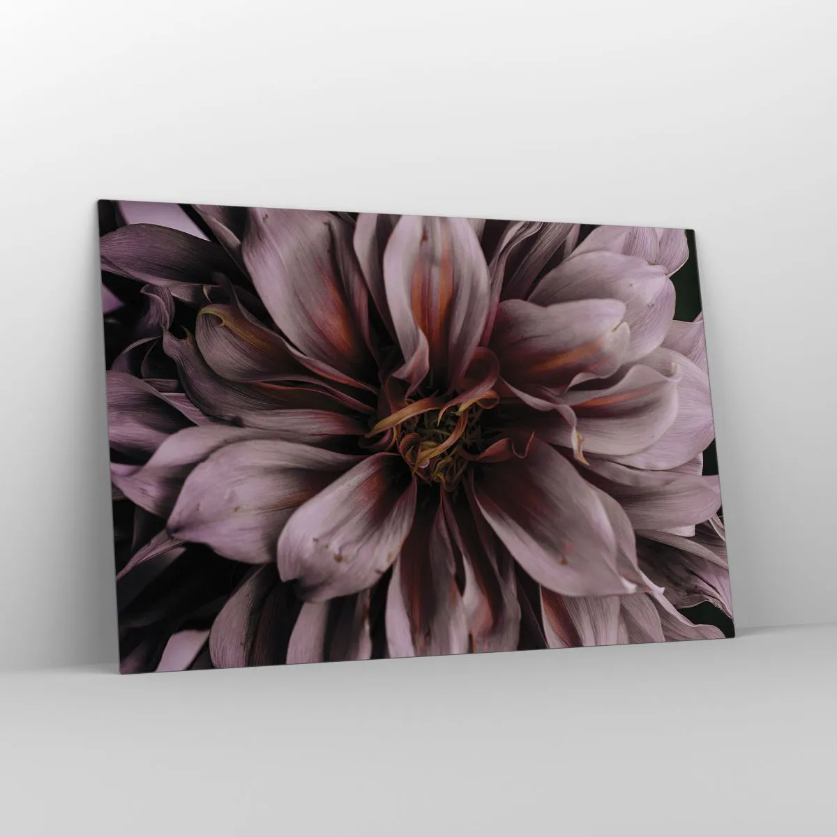 Impression sur verre - Image sur verre - Gros plan d'une fleur sombre aux pétales violets et bordeaux - 120x80cm - Un coeur fleuri - Décoration murale moderne pour le salon et la chambre ARTTOR