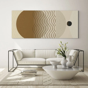 Impression sur verre - Image sur verre - Abstraction géométrique avec des cercles et des lignes ondulées aux couleurs chaudes. - 70x100cm - Sur l'origine des figures géométriques - Décoration murale moderne pour le salon et la chambre ARTTOR