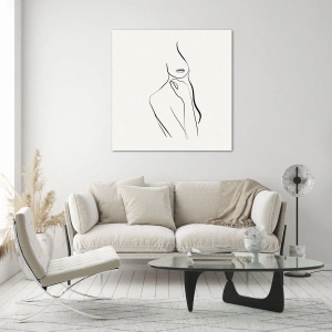 Impression sur verre - Image sur verre - Un croquis minimaliste de la silhouette d'une femme sur un fond clair. - 80x120cm - Vague de mélancolie - Décoration murale moderne pour le salon et la chambre ARTTOR