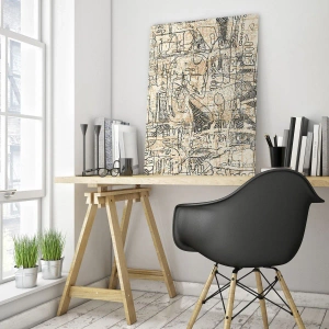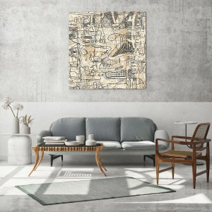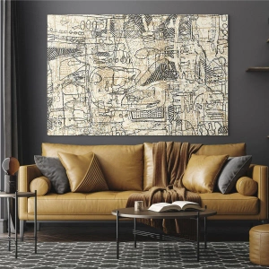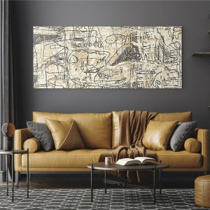 Impression sur verre - Image sur verre - Une structure abstraite complexe avec des motifs géométriques et esquissés. - 120x80cm - Il attend d'être décodé - Décoration murale moderne pour le salon et la chambre ARTTOR