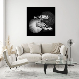 Tableau sur verre « Yin et Yang - Équilibre parfait » est un cliché profondément symbolique où la danse devient une métaphore de l'harmonie et de l'équilibre. Sur un fond sombre, deux ballerines aux costumes contrastés – tutus blanc et noir – se reposent dans une pose identique, créant un signe visuel du yin et du yang. La photographie respire la paix, la concentration et un contraste parfait de formes et de couleurs.