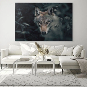 Décoration murale - Chasseur - Loup observant avec vigilance depuis sa cachette dans la forêt