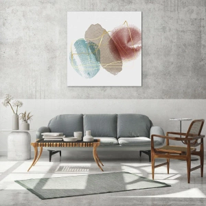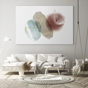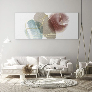 Impression sur verre - Image sur verre - Formes abstraites aux couleurs délicates et aux lignes dorées - 80x120cm - Coraux de l'espace - Décoration murale moderne pour le salon et la chambre ARTTOR