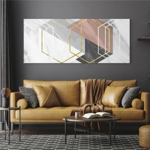 Impression sur verre - Image sur verre - Figures géométriques avec des accents d'or et de marbre - 70x100cm - Composition en chaîne - Décoration murale moderne pour le salon et la chambre ARTTOR