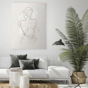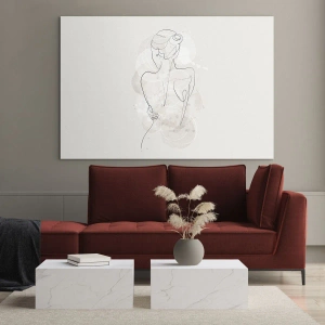 Impression sur verre - Image sur verre - Un croquis délicat d'une femme sur un fond clair - 100x70cm - Comme un instrument sensible - Décoration murale moderne pour le salon et la chambre ARTTOR