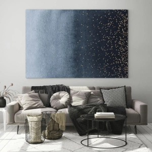 Impression sur verre - Image sur verre - Dégradés bleu marine avec de minuscules points dorés - 70x50cm - Composition - phases bleues - Décoration murale moderne pour le salon et la chambre ARTTOR