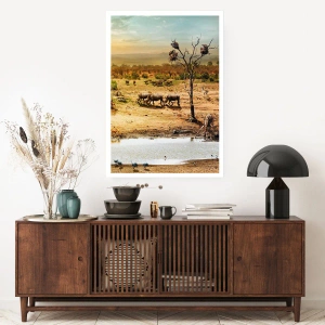 Affiche - Poster - Savane avec des rhinocéros et un point d'eau - 50x70cm - "Et d'Eden coulait une rivière..." - Décoration murale moderne pour le salon et la chambre ARTTOR