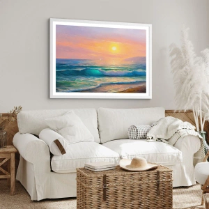 Affiche dans un cadre blanc - Poster - Le chant turquoise des vagues - 70x50 cm