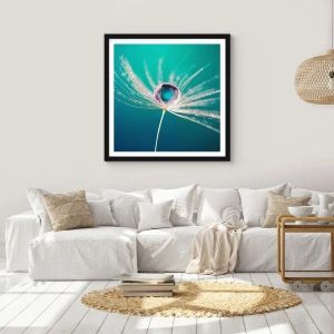 L'affiche « Photographie macro d'une goutte d'eau sur un pissenlit » est une décoration unique qui attire l'attention par son souci du détail et la subtilité de sa présentation. Le motif représente une délicate goutte d'eau qui s'est déposée sur les fibres délicates d'un pissenlit, créant un effet visuel phénoménal.