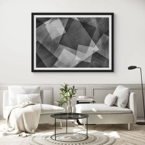 Affiche dans un cadre noir - Poster - Abstraction en noir et blanc avec des formes géométriques - 70x50cm - Le symbole éternel de durabilité et d'ordre - Décoration murale moderne pour le salon et la chambre ARTTOR