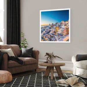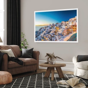 Affiche - Poster - Vue des maisons illuminées de Santorin au coucher du soleil - 50x70cm - L'essence de la grecque - Décoration murale moderne pour le salon et la chambre ARTTOR