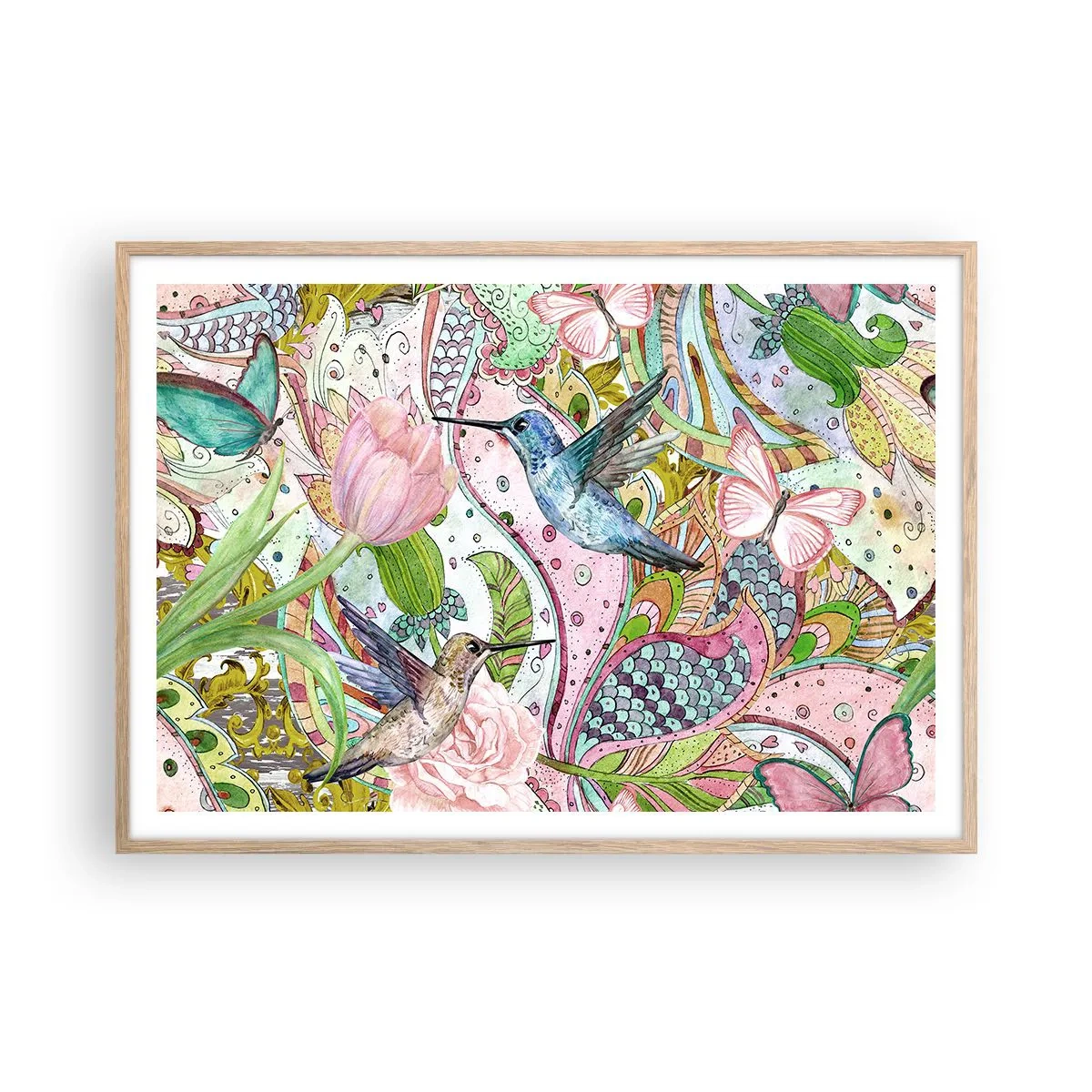 Affiche dans un chêne clair - Poster - Empêtré dans les vignes - 100x70 cm