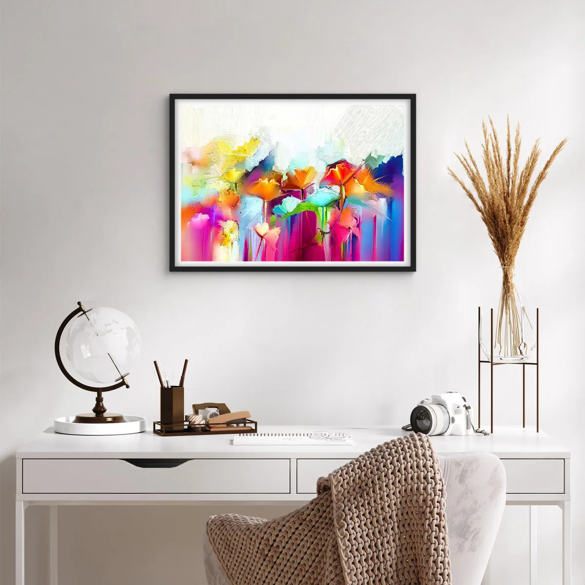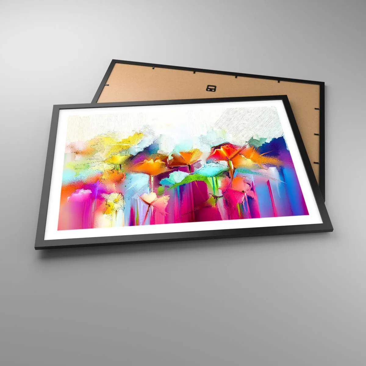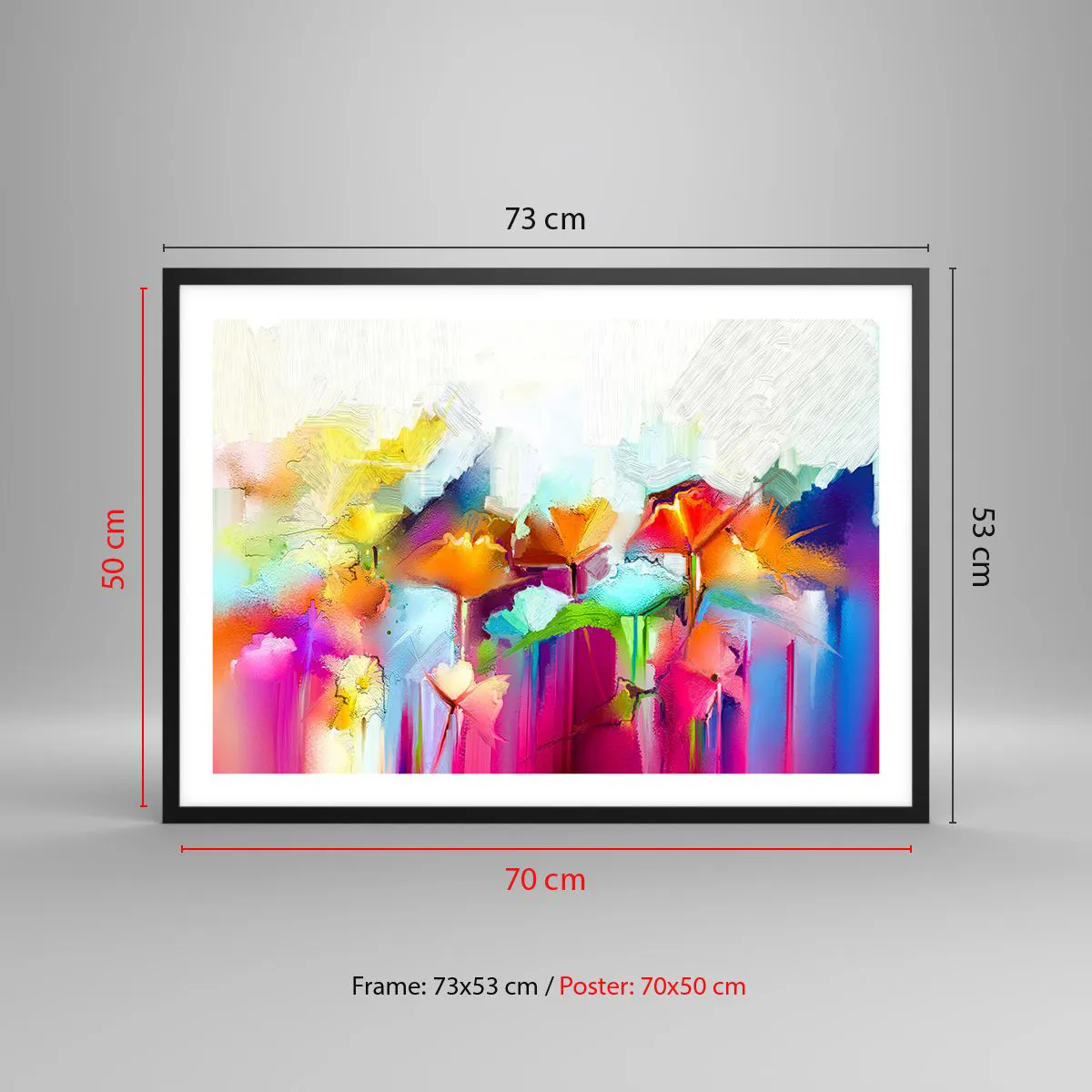 Affiche dans un cadre noir - Poster - Fleurs colorées abstraites sur fond clair - 70x50cm - L'arc-en-ciel s'est épanoui - Décoration murale moderne pour le salon et la chambre ARTTOR