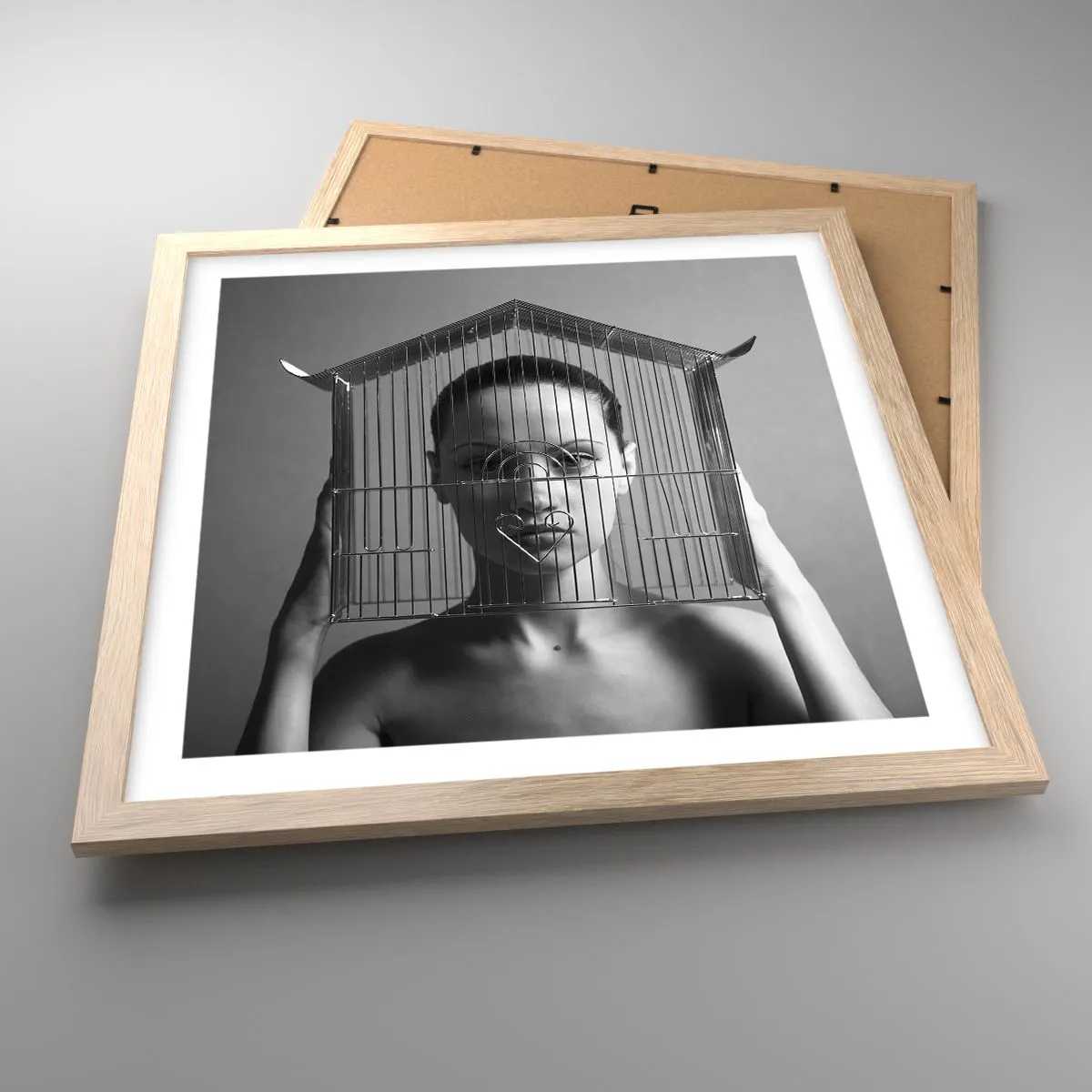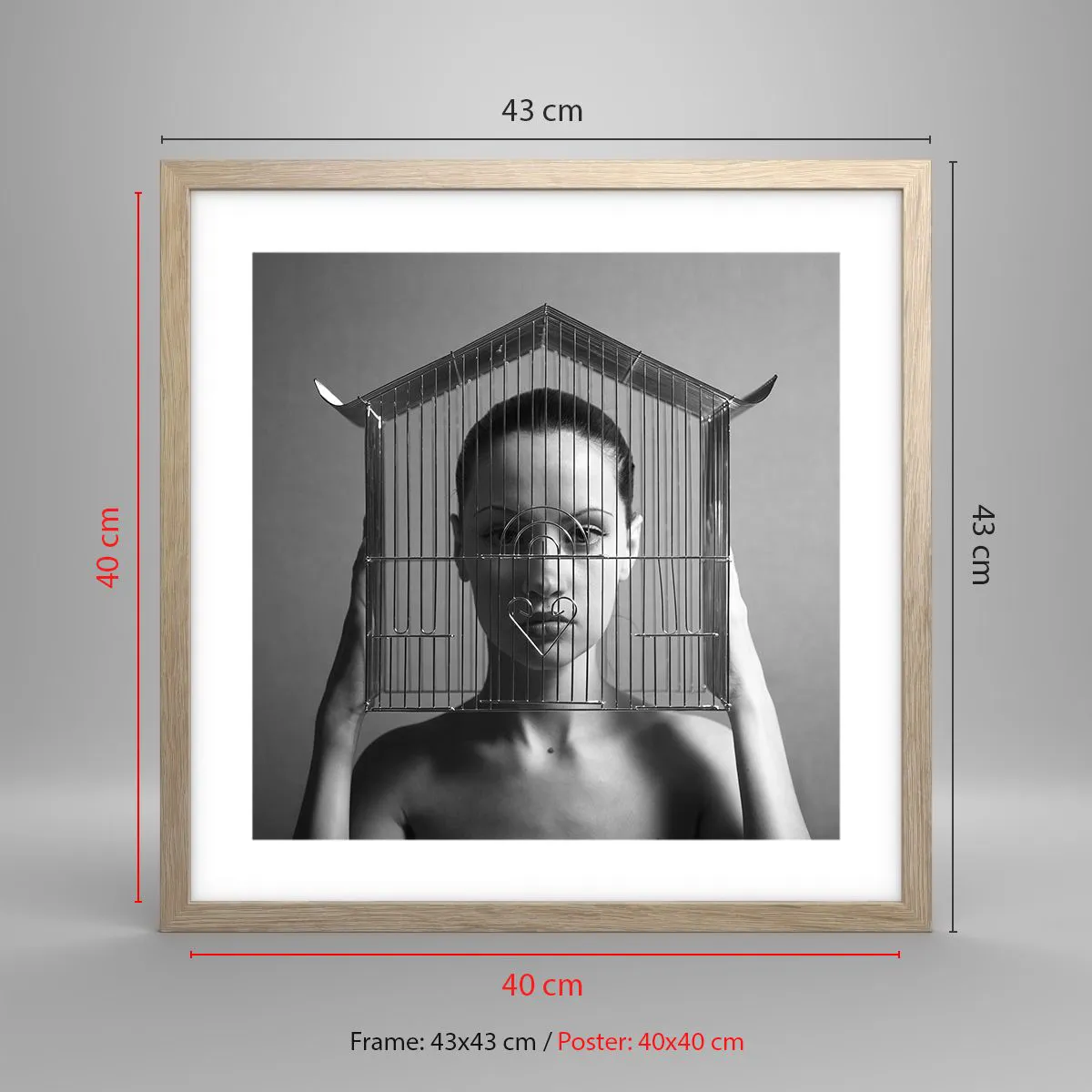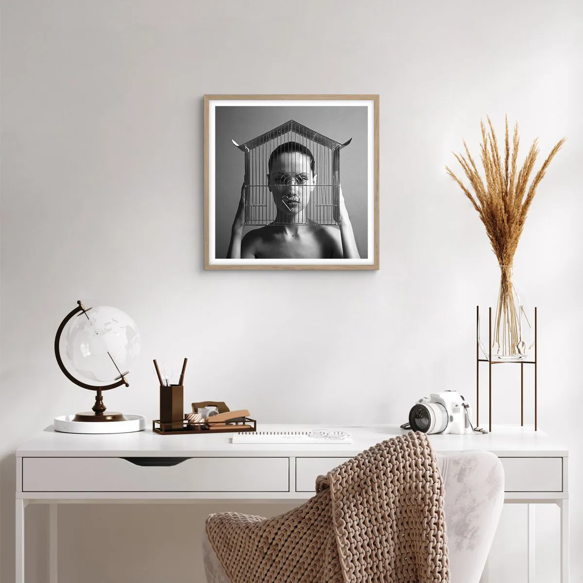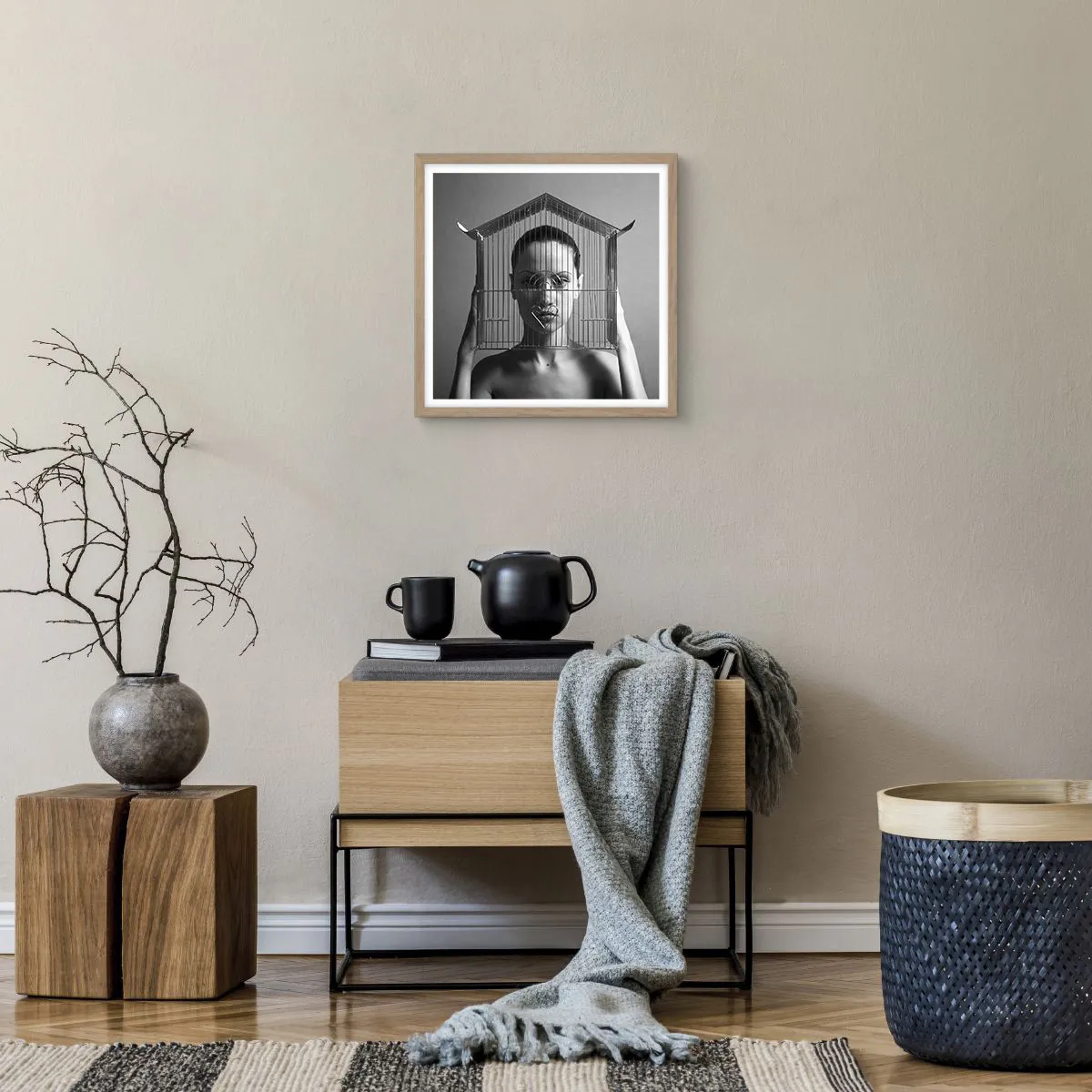 Affiche dans un chêne clair - Poster - Portrait un peu surréaliste - 40x40 cm