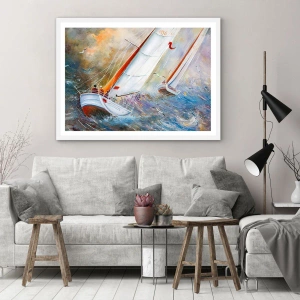 Affiche dans un cadre blanc - Poster - Concourir sur les vagues - 70x100 cm
