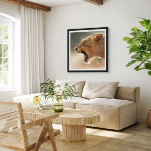Affiche dans un cadre noir - Poster - Portrait d'une lionne rugissante à la lumière naturelle - 100x70cm - Essayez de ne pas écouter - Décoration murale moderne pour le salon et la chambre ARTTOR