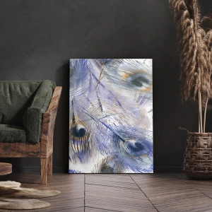 Impression sur toile - Image sur toile - Un motif avec des plumes de paon dans des tons de bleu et d'or - 140x50cm - Composition de paon - Décoration murale moderne pour le salon et la chambre ARTTOR