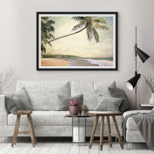 - Cette affiche représente un palmier sur fond de mer, créant une vue tropicale et paisible. Parfaite pour les intérieurs à l'ambiance festive.