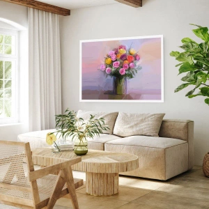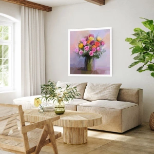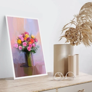 Affiche - Poster - Un bouquet de roses et de fleurs dans un vase en verre - 50x70cm - Beauté conservée - Décoration murale moderne pour le salon et la chambre ARTTOR