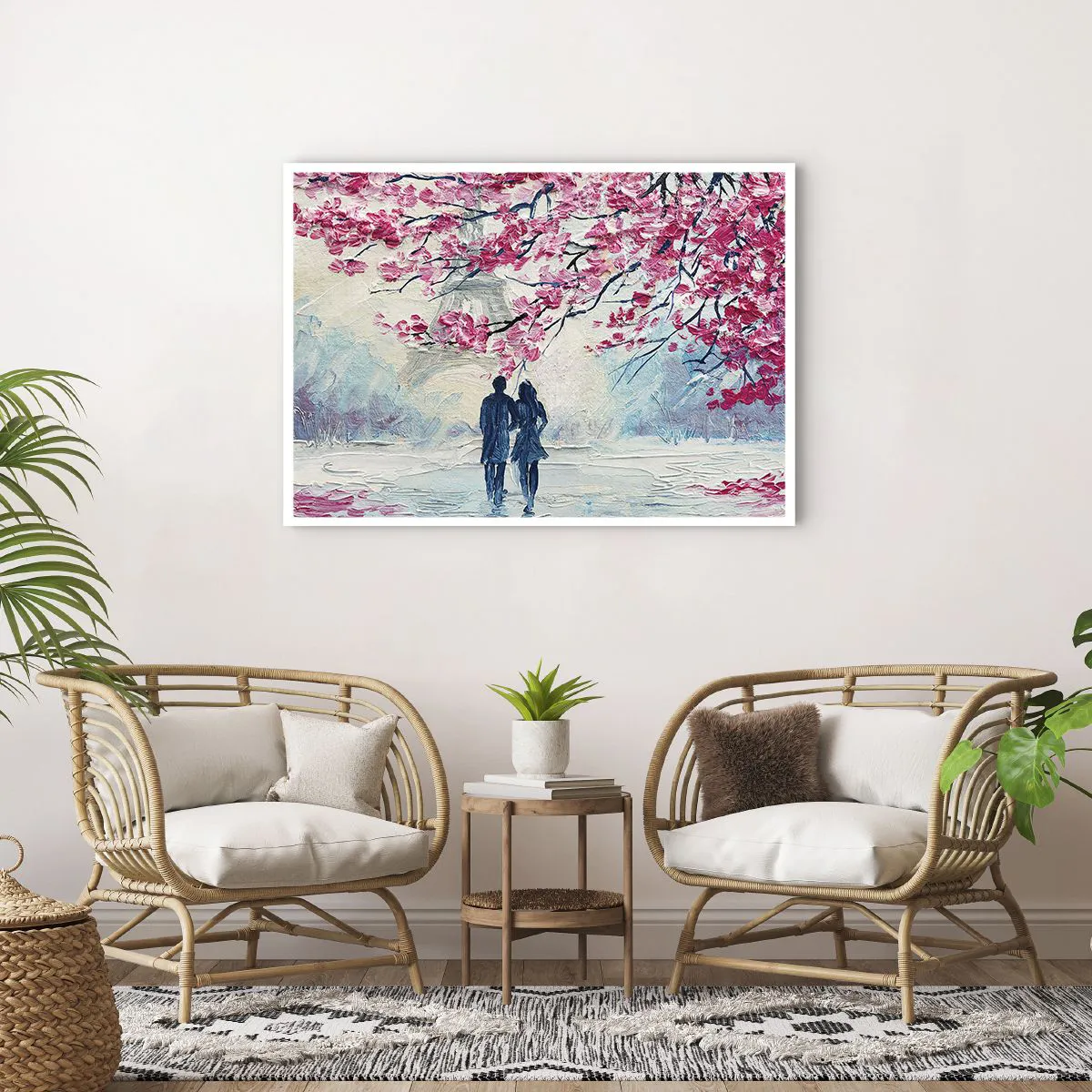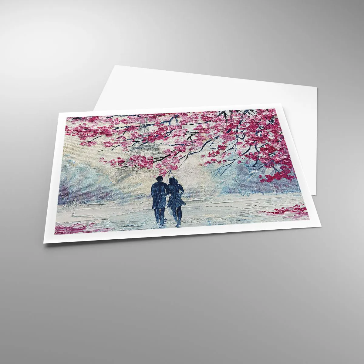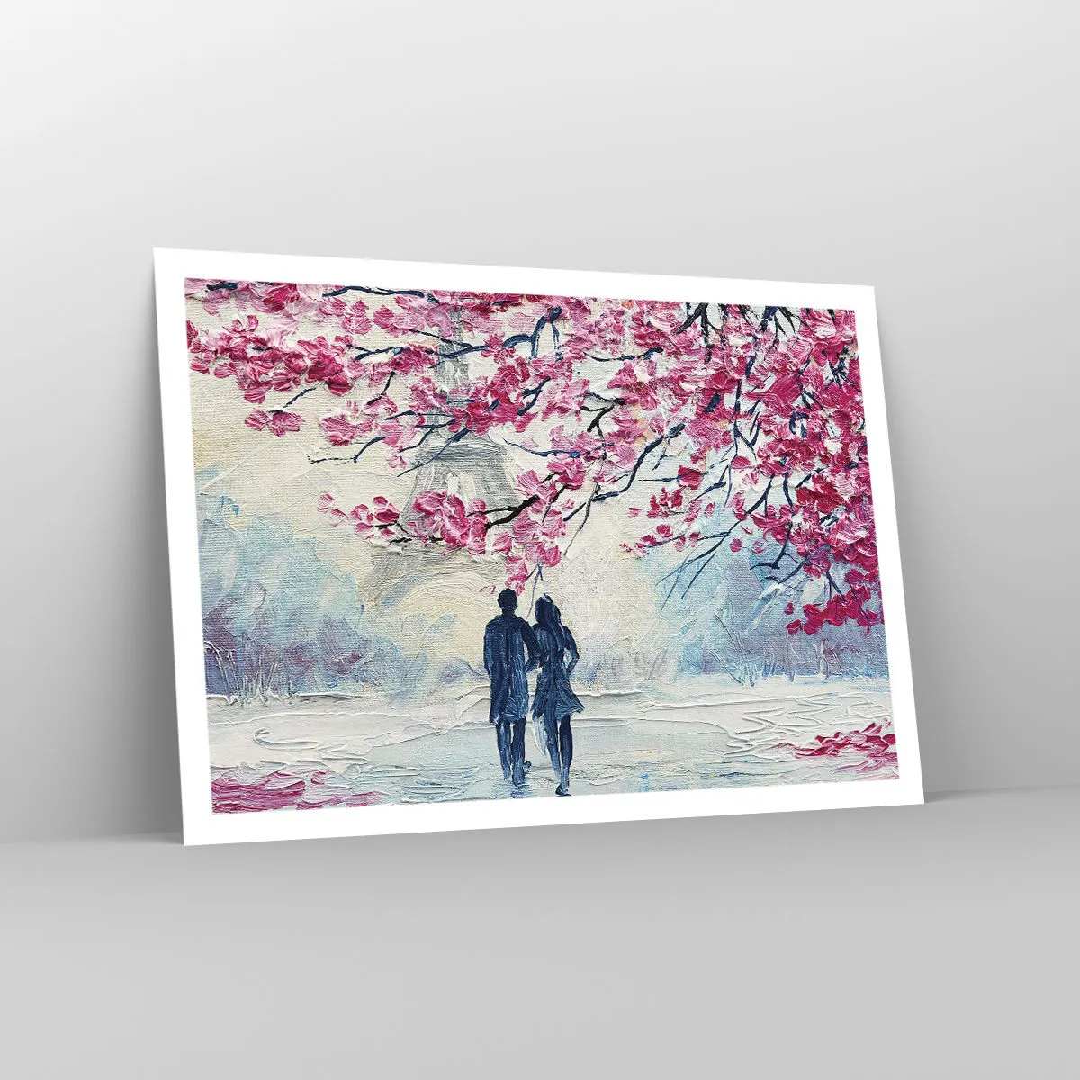 Affiche - Poster - Un couple sous des arbres roses en fleurs dans un cadre romantique - 100x70cm - Ballade romantique - Décoration murale moderne pour le salon et la chambre ARTTOR