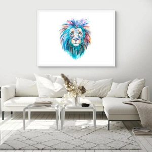 • Animaux, Lion, Abstrait, Afrique, Art, Animaux, Pour le bureau, Pour le bureau, Pour la salle à manger, Pour le hall, Pour le salon, Pour la chambre, Blanc bleu, Verticale