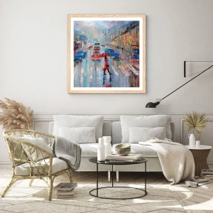 Affiche dans un chêne clair - Poster - Après-midi pluvieux en ville - 100x70 cm