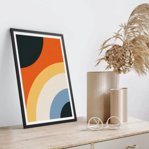 Affiche dans un cadre noir - Poster - Œuvre d'art abstraite avec des arcs colorés et des cercles contrastés - 70x50cm - Vers son soi - Décoration murale moderne pour le salon et la chambre ARTTOR