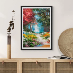 Affiche dans un cadre noir - Poster - Jardin forestier, forêt de fleurs - 70x100 cm