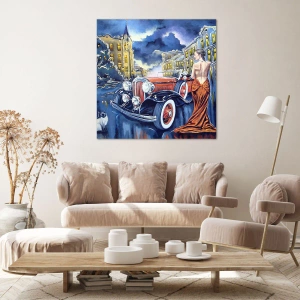 Impression sur toile - Image sur toile - Nocturne en bleu et corail - 30x30 cm