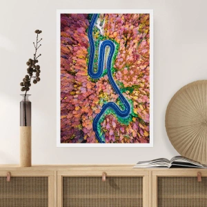 Affiche - Poster - Une route sinueuse dans une forêt d'automne vue à vol d'oiseau - 100x70cm - Route sinueuse à travers la forêt - Décoration murale moderne pour le salon et la chambre ARTTOR