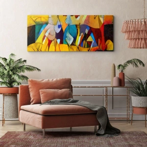 Impression sur toile - Image sur toile - Une abstraction colorée représentant des figures sous une forme géométrique - 120x50cm - Soleil - vie - joie - Décoration murale moderne pour le salon et la chambre ARTTOR