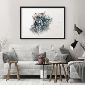 Affiche dans un cadre noir - Poster - Un visage de femme avec des branches formant des cheveux dans un style surréaliste. - 50x70cm - Écouter le murmure des arbres - Décoration murale moderne pour le salon et la chambre ARTTOR