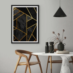- Cette affiche présente des motifs géométriques dorés sur fond noir. Un design luxueux et élégant, parfait pour les intérieurs modernes.