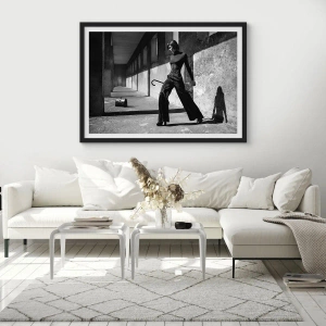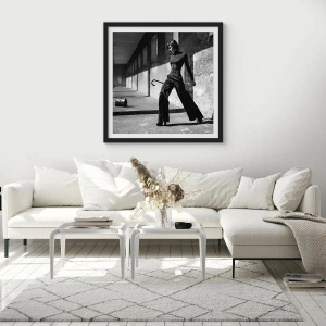 Affiche dans un cadre noir - Poster - Femme élégante dans un environnement industriel - 70x50cm - Élégance urbaine - Décoration murale moderne pour le salon et la chambre ARTTOR