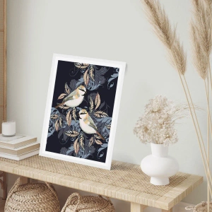 Affiche dans un cadre blanc - Poster - Babillement jaune et bleu - 91x61 cm