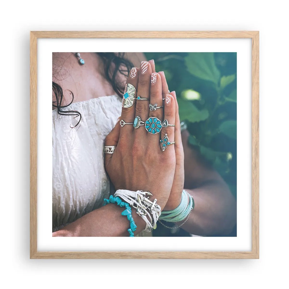 Affiche dans un chêne clair - Poster - Bienvenue au centre du bien-être - 50x50 cm