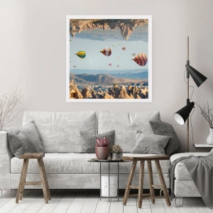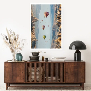 Affiche - Poster - Montgolfières flottant au-dessus d'un terrain rocheux - 50x70cm - Ici, tout est possible - Décoration murale moderne pour le salon et la chambre ARTTOR