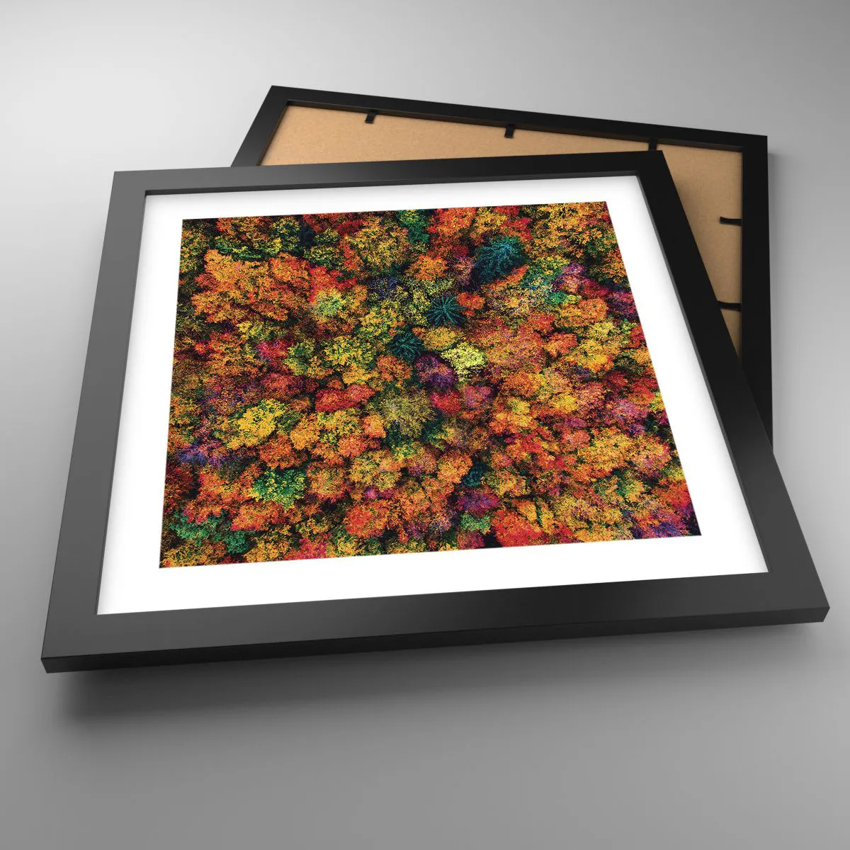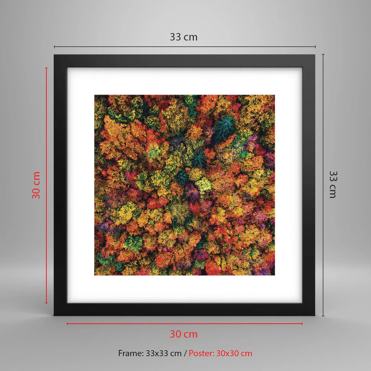 Affiche dans un cadre noir - Poster - Bouquet d'arbres automnal - 30x30 cm