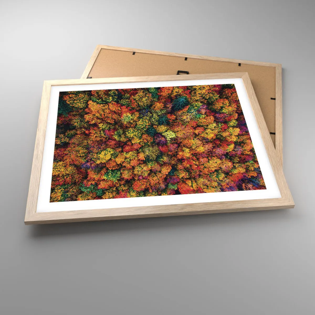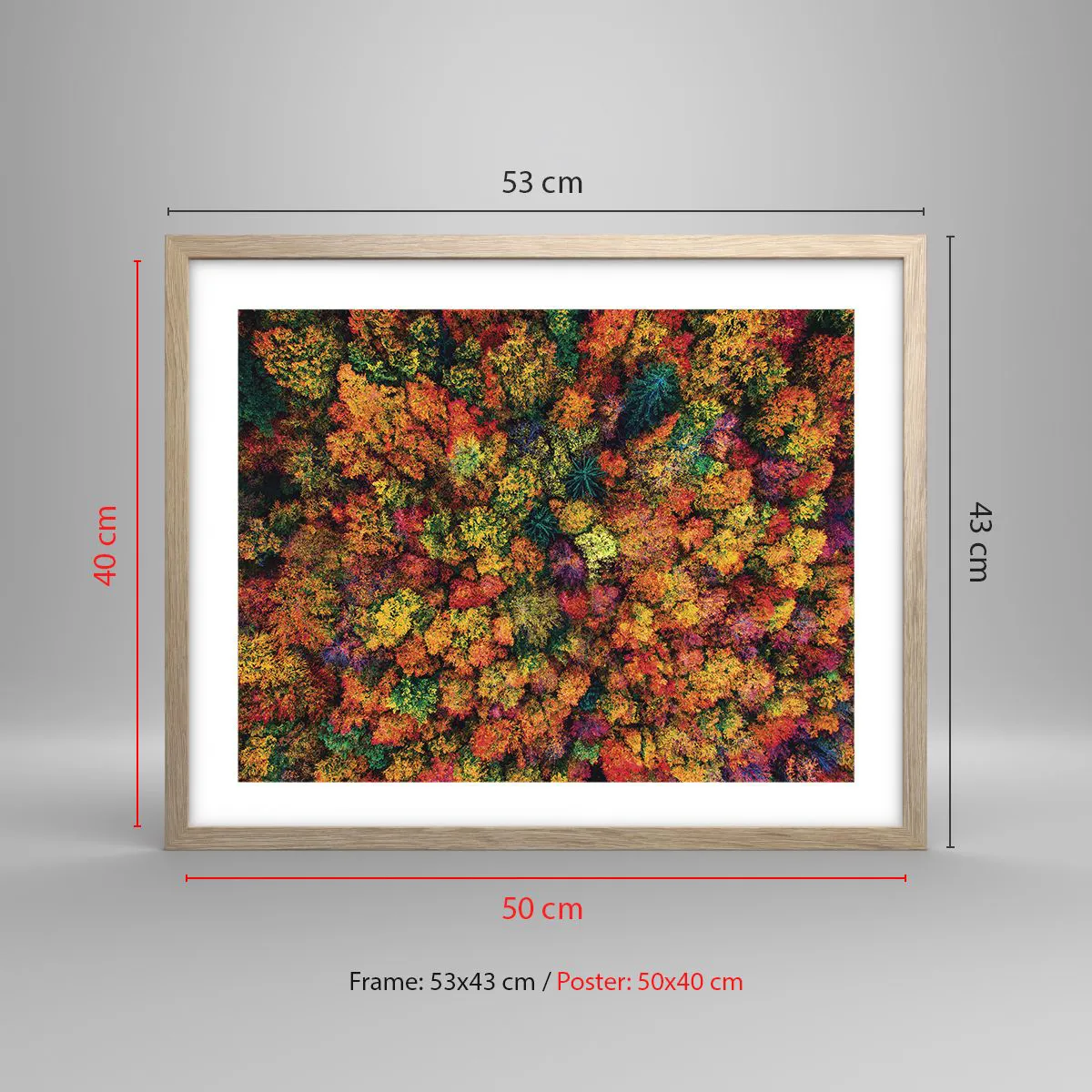 Affiche dans un chêne clair - Poster - Bouquet d'arbres automnal - 50x40 cm