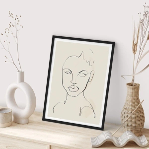 Affiche dans un cadre noir - Poster - Croquis minimaliste du visage d'une femme - 100x70cm - Esquisse de la sensualité - Décoration murale moderne pour le salon et la chambre ARTTOR