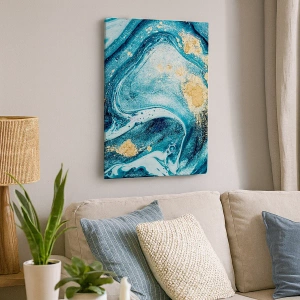 Impression sur toile - Image sur toile - Une composition abstraite de vagues et d'accents dorés - 100x70cm - Vortex bleu - Décoration murale moderne pour le salon et la chambre ARTTOR