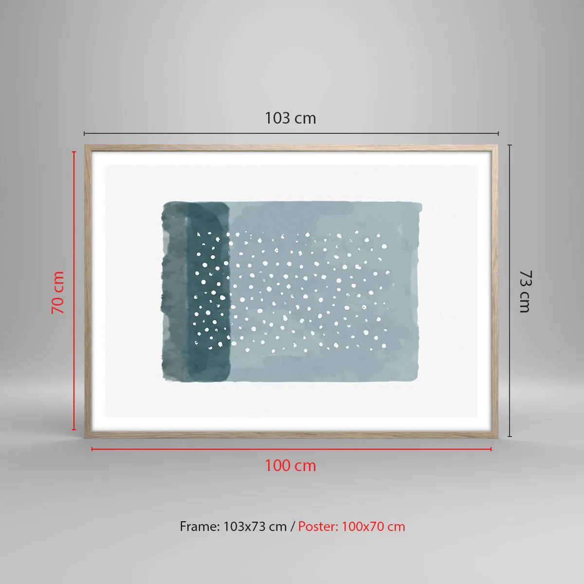 Affiche dans un chêne clair - Poster - Évolution de bleus - 100x70 cm