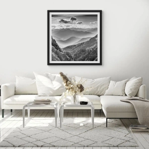 Affiche dans un cadre noir - Poster - Paysage de montagne avec des nuages à l'horizon - 50x70cm - Jusqu'à l'horizon - Décoration murale moderne pour le salon et la chambre ARTTOR