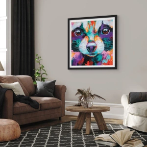 Affiche dans un cadre noir - Poster - Portrait abstrait coloré d'un animal avec un œil expressif - 50x70cm - Uniquement de belles émotions - Décoration murale moderne pour le salon et la chambre ARTTOR