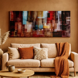 Impression sur toile - Image sur toile - Abstraction géométrique dans des tons intenses de rouge - 100x70cm - Mélange de confusions - Décoration murale moderne pour le salon et la chambre ARTTOR